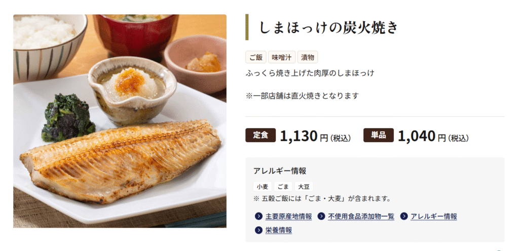 大戸屋では公式サイトで全メニューの栄養成分を公開しており、しまほっけ定食もその一つ。