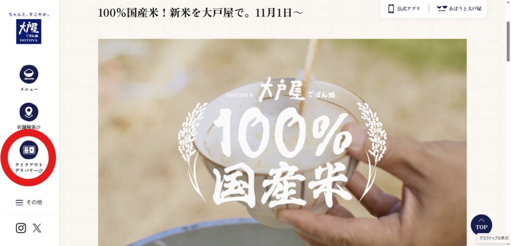 - 公式サイトから「テイクアウト予約」を選ぶ