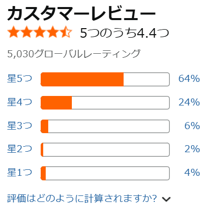 レビュー評価は4.4で軒並み高評価でした。